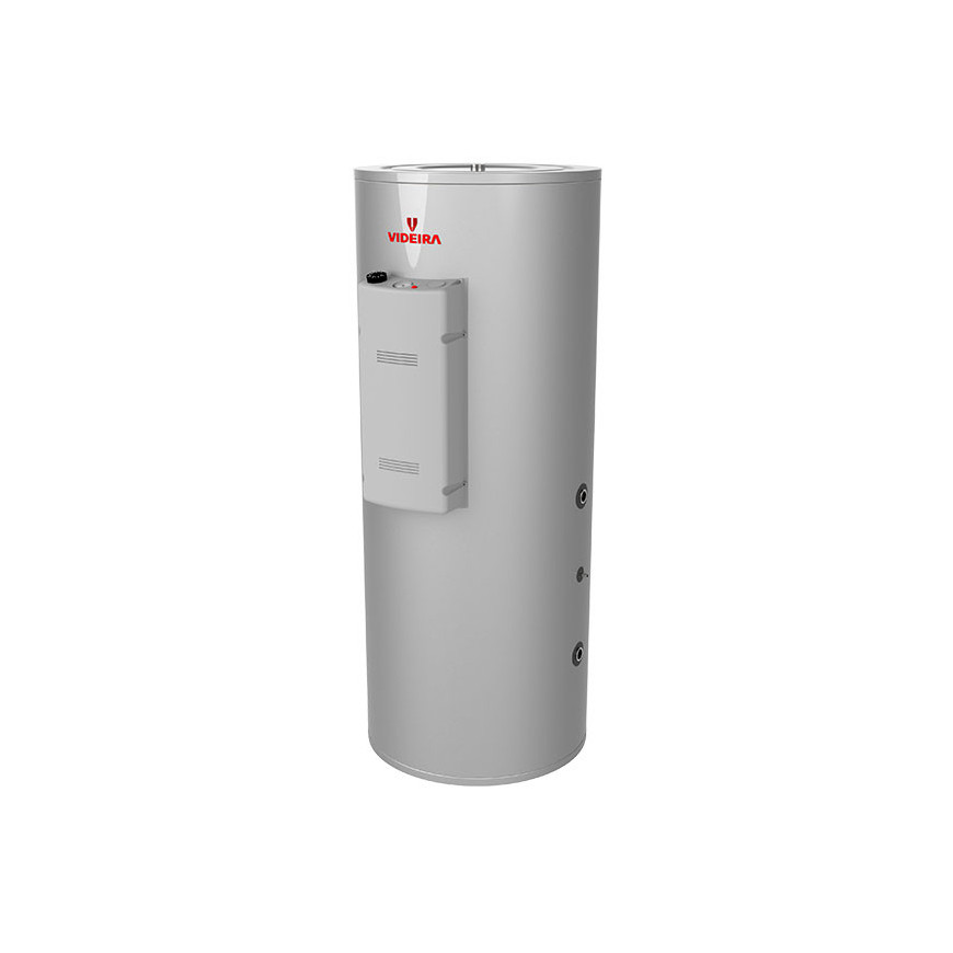 Depósito E-RENOV2 inox Duplex LDX 2101 200L, com 2 serpentinas (1 Solar + 1 Bomba de calor), vertical/solo, 1500W 230V, Videira 45.200.15.57