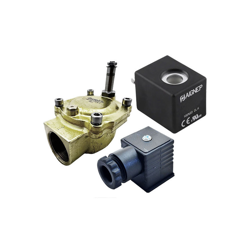 Eletroválvula 2/2 1''1/2 de latão, acionamento indireto e normalmente fechada com juntas NBR, 12V DC, Aignep
