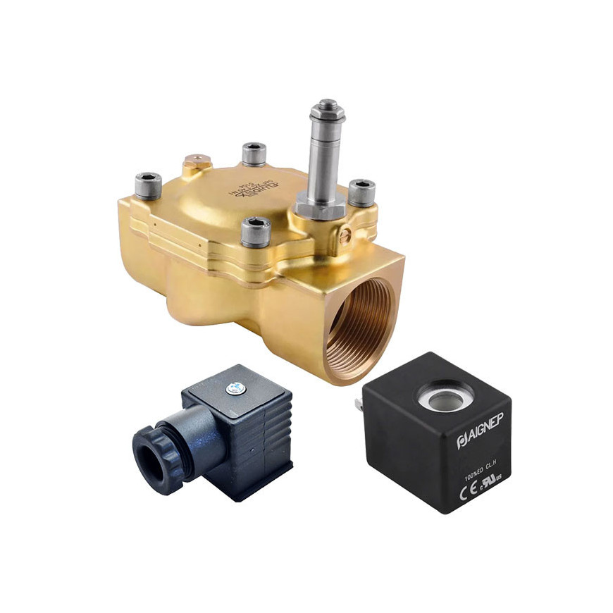 Eletroválvula 2/2 1''1/4 de latão, acionamento indireto e normalmente fechada com juntas NBR, 24V AC, Aignep