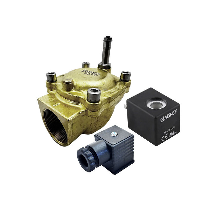 Eletroválvula 2/2 2'' de latão, acionamento indireto e normalmente fechada com juntas NBR, 24V AC, Aignep
