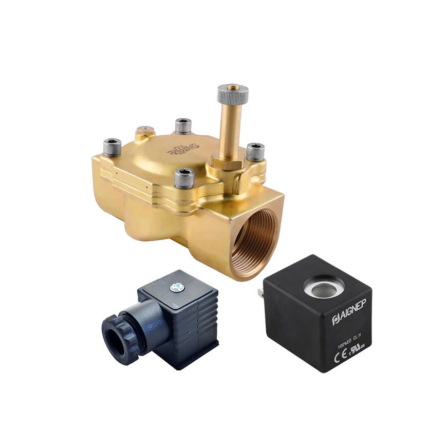 Eletroválvula 2/2 1''1/4 de latão, acionamento indireto e normalmente aberta com juntas NBR, 24V AC, Aignep