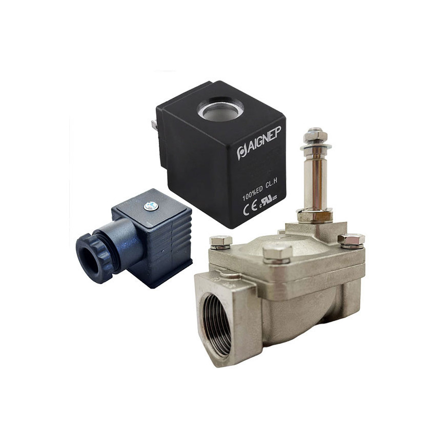 Eletroválvula 2/2 1''1/4 de inox, acionamento indireto e normalmente fechada com juntas FKM, 24V DC, Aignep